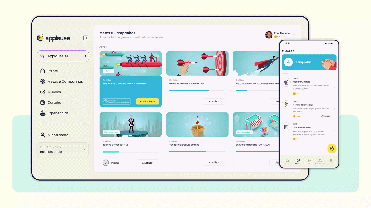 Grandes áreas de vendas merecem uma plataforma à altura de seus desafios. Engaje seu time com campanhas gameficadas, comunicação contínua e recompensas que fazem diferença.