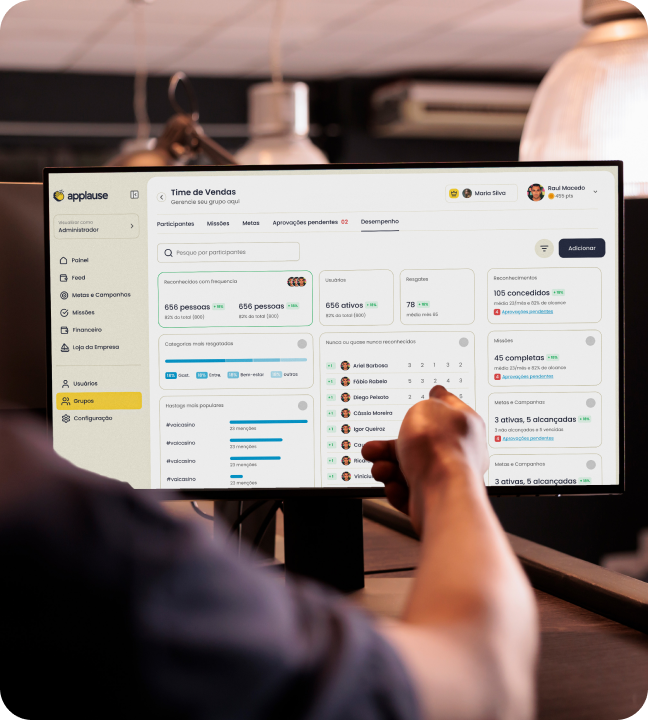 Transforme cada ação desejada em missões, rankings e desafios com a Applause. Assim, seu time se mantém engajado, reconhecido e focado nas metas, enquanto a performance cresce de forma contínua.